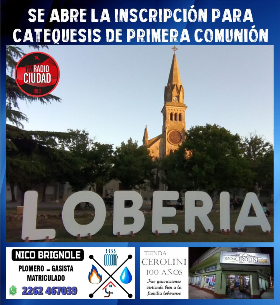 Desde la Parroquia Nuestra Señora del Carmen de Lobería, se informó que desde el 12 de marzo se abrirá la inscripción para primer año de catequesis de primera comunión, para niños a partir de tercer año de Escuela primaria.